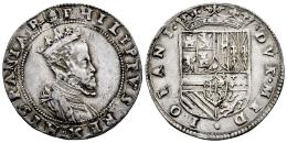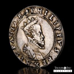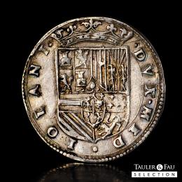 Felipe II (1556-1598). 1 ducatón. 1585. Milán. (Tauler-486). (Vti-52). (Mir-308). . Pátina de monetario con un tono azulado y dorado que acentúa su excelente atractivo visual. Tan solo un leve defecto de acuñación junto a la leyenda, en anverso. Muy rara en esta conservación. Encapsulada por NGC como MS 61 (Top Pop), el mejor ejemplar conservado en el censo de NGC. Est...1200,00.