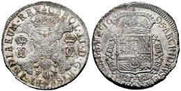 La mayoría correspondía a 8 reales columnarios mexicanos, junto con algunas macuquinas de plata —incluyendo raros klippes transicionales de 1733-1734— y unos pocas macuquinas de Guatemala, en estados de conservación variados. MBC+. Est...2000,00.