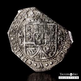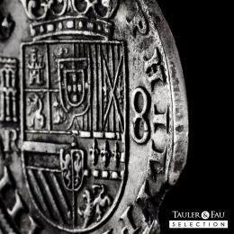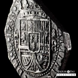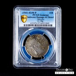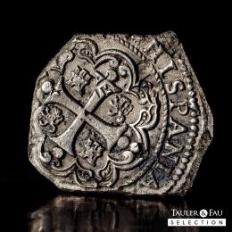El navío "Golden Fleece", hundido alrededor de 1550 en el Caribe norte, debe su nombre a la marca real hallada en varios lingotes de oro tipo “finger”. La práctica totalidad de las monedas recuperadas pertenecen a emisiones mexicanas de Carlos y Juana, todas anteriores al ensayador “S”, incluyendo varias rarezas y, especialmente, tres ejemplares del 8 reales “Early Series” de Rincón (1538), las primeras piezas de ocho reales acuñadas en el Nuevo Mundo. Aunque la ubicación exacta del pecio no ha sido revelada, el hallazgo —de unos pocos miles de monedas— se convirtió desde mediados de los años 1990 en la principal fuente de estas emisiones tempranas. Est...2500,00.