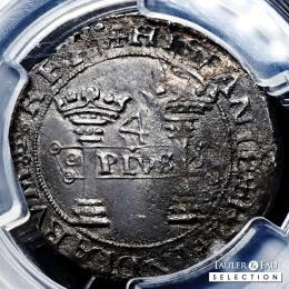 Felipe IV (1621-1665). 4 reales. 1628. Segovia. P. (Cal-1165). . Cuatro lises en el Antiguo de Borgoña. Preciosa pátina. Muy rara en esta conservación. Encapsulada por PCGS como AU 58. Solamente 1 ejemplar mejor conservado según el censo de PCGS. Ex Áureo Selección (06/03/1996), lote 311. Est...1000,00.