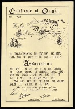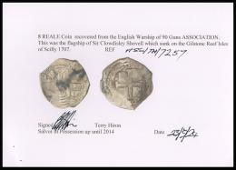 Procedente del naufragio del "H.M.S. Association", hundido en 1707 frente a las Islas Scilly, al suroeste de Inglaterra. Incluye certificado de autenticidad original nº 363.