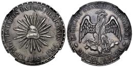 México. 8 escudos. 1867. México. CH. (Km-383.9). (Fried-64). . Precioso color y brillo original con un excelente atractivo visual. Ligera debilidad de acuñación central típica en esta emisión. Muy rara en esta conservación. Encapsulada por
