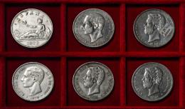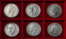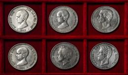 Centenario de la Peseta (1868-1931). Lote de 6 monedas de 5 pesetas. Variedad de reyes y fechas. Ag. 149,01 g. 0,900 milésimas. Es imprescindible un riguroso examen. SOLO ENVÍO A ESPAÑA PENÍNSULA. NO SE ADMITE DEVOLUCIÓN. BC+/MBC+. Est...250,00.