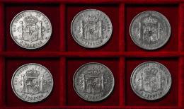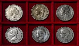 Centenario de la Peseta (1868-1931). Lote de 6 monedas de 5 pesetas. Variedad de reyes y fechas. Ag. 148,47 g. 0,900 milésimas. Es imprescindible un riguroso examen. SOLO ENVÍO A ESPAÑA PENÍNSULA. NO SE ADMITE DEVOLUCIÓN. BC+/MBC+. Est...250,00.