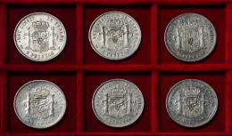 Centenario de la Peseta (1868-1931). Lote de 6 monedas de 5 pesetas. Variedad de reyes y fechas. Ag. 149,71 g. 0,900 milésimas. Es imprescindible un riguroso examen. SOLO ENVÍO A ESPAÑA PENÍNSULA. NO SE ADMITE DEVOLUCIÓN. BC+/MBC+. Est...250,00.