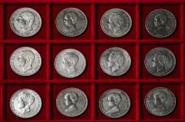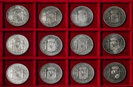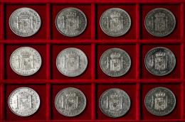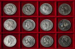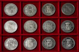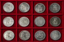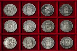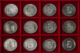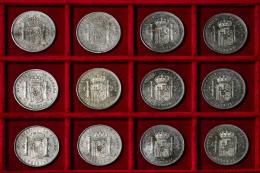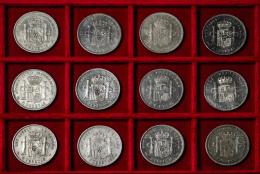 Centenario de la Peseta (1868-1931). Lote de 12 monedas de 5 pesetas. Variedad de reyes y fechas. Ag. 298,99 g. 0,900 milésimas. Es imprescindible un riguroso examen. SOLO ENVÍO A ESPAÑA PENÍNSULA. NO SE ADMITE DEVOLUCIÓN. BC+/MBC+. Est...500,00.