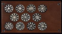 Juan Carlos I (1975-2014). III Serie Iberoamericana. 1997. Danzas y trajes típicos emitidos por Argentina, Bolivia, Cuba, Ecuador, España, Guatemala, México, Nicaragua, Paraguay, Perú, Portugal y Uruguay. En el centro una medalla especial de la serie. Ag. Peso del conjunto 351 g. Presentado en estuche oficial con certificado. PROOF. Est...700,00.