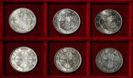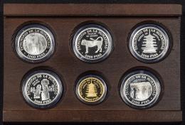 Juan Carlos I (1975-2014). Serie de 6 monedas. Patrimonio Mundial. 1997. 2.000 Pesetas (5) y 40.000 Pesetas (Petra, Palacio de Abomey, Pagoda de Horyu-Ji, Acrópolis e Isla de Pascua. Ar 135 g. /Au 13,5 g. Presentado en estuche oficial. PROOF. Est...1800,00.