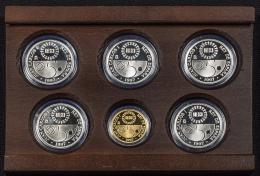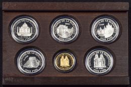 Juan Carlos I (1975-2014). Serie de 6 monedas. Patrimonio de la Humanidad. 1996. 2.000 Pesetas (5) y 40.000 Pesetas. Abu Simbel, Palenque, Djenne, Mérida y Taj Majal. Ar 135 g. /Au 13,50 g. Presentado en estuche oficial con certificados. PROOF. Est...1800,00.