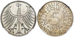 Alemania. 5 mark. 1951. Hamburgo. J. (Km-112.1). Ag. Encapsulada por NGC como MS 63. Est...40,00.