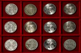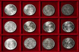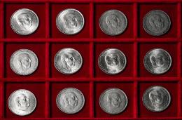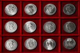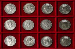Lote de 13 Estuches-carteras oficiales de Juan Carlos I. Conteniendo Series Básicas de los años 1992/93/94/95/96 y 97. Emisiones especiales en plata como: 2.000 Pesetas 1994, 2.000 Pesetas 1995, 2.000 Pesetas 1996, 5 Ecu 1996 Menorca, 2.000 Pesetas 1997, 3 Euro 1998 Venezuela y 1.000 Pesetas 1998 Expo '98. Set mundial 1982. Es imprescindible un riguroso examen. NO SE ADMITE DEVOLUCIÓN. SC. Est...300,00.
