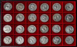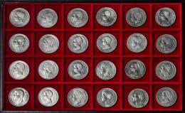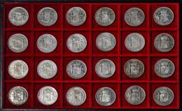 Centenario de la Peseta (1868-1931). Lote de 24 monedas de 5 pesetas. Variedad de reyes y fechas. Ag. 595,94 g. 0,900 milésimas. Es imprescindible un riguroso examen. SOLO ENVÍO A ESPAÑA PENÍNSULA. NO SE ADMITE DEVOLUCIÓN. BC+/MBC+. Est...1000,00.