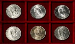 Estado Español (1936-1975). Lote de 6 monedas de 100 pesetas de 1966. Ag. 113,72 g. 0,800 milésimas. Es imprescindible un riguroso examen. NO SE ADMITE DEVOLUCIÓN. MBC+/EBC+. Est...150,00.