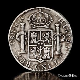 Fernando VII (1808-1833). 8 reales. 1808. Potosí. PJ. (Cal-1373). Ag. 26,89 g. Leves rayitas en anverso. Suave tono. MBC+/EBC-. Est...200,00.