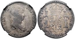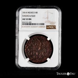 Fernando VII (1808-1833). 8 reales. 1814. Morelos. (Cal-1344). Ae. Encapsulada por NGC como AU 53 BN. Est...180,00.