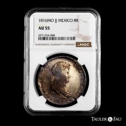 Fernando VII (1808-1833). 8 reales. 1816. México. JJ. (Cal-1331). Ag. Ligera pátina. Encapsulada por NGC como AU 55. Est...200,00.