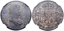 Fernando VII (1808-1833). 8 reales. 1819. México. JJ. (Cal-1334). Ag. Bonita pátina con leves restos de brillo original. Bonito ejemplar. Encapsulada por NGC como AU 55. Cápsula rota en la esquina inferior izquierda. Est...300,00.