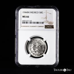 México. 50 centavos. 1944. México. (Km-447). Ag. Brillo original. Encapsulada por NGC como MS 66. Est...45,00.