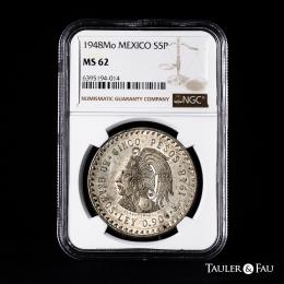 México. 5 pesos. 1948. México. (Km-465). Ag. Encapsulada por NGC como MS 62. Est...70,00.