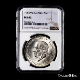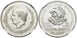 México. 5 pesos. 1955. México. (Km-496). Ag. Encapsulada por NGC como MS 63. Est...60,00.