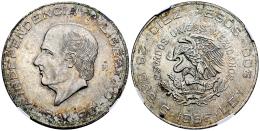 México. 10 pesos. 1956. México. (Km-474). Ag. Encapsulada por NGC como MS 63. Est...60,00.