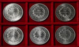Francia. Lote de 6 monedas de 50 francs. Ag. 179,90 g. 0,900 milésimas. Es imprescindible un riguroso examen. NO SE ADMITE DEVOLUCIÓN. EBC/SC. Est...300,00.