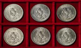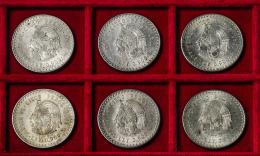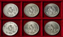 México. Lote de 6 monedas de 5 pesos. Ag. 180,17 g. 0,900 milésimas. Es imprescindible un riguroso examen. NO SE ADMITE DEVOLUCIÓN. EBC/SC-. Est...300,00.