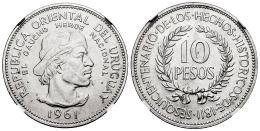 Uruguay. 10 pesos. 1961. (Km-43). Ag. Encapsulada por NGC como MS 64. Est...35,00.