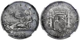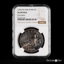 En 1869 se acuñan las primeras monedas pertenecientes a la Edad Contemporánea. Es en este mismo año cuando el Gobierno Provisional cierra las cecas de Sevilla, Barcelona, Segovia entre otras y escoge a Madrid como centro de producción.