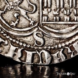 Reino de Castilla y León. Enrique II (1368-1379). 1 real. Toledo. (Bautista-554). Ag. 3,38 g. T en el extremo inferior del eje vertical. Pátina. MBC+. Est...350,00.
