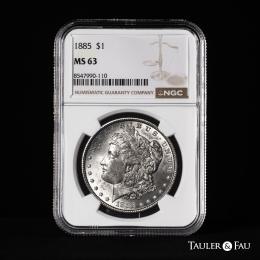 Estados Unidos. Morgan Dollars. 1 dollar. 1885. Philadelphia. (Km-110). Ag. Pleno brillo original. Encapsulada por NGC como MS 63. NGC-MS. Est...150,00.