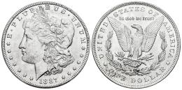 Estados Unidos. Morgan Dollars. 1 dollar. 1887. Philadelphia. (Km-110). Ag. 26,78 g. Marquitas. Brillo original. EBC. Est...50,00.