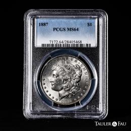 Estados Unidos. Morgan Dollars. 1 dollar. 1887. Philadelphia. (Km-110). Ag. Brillo original. Encapsulada por PCGS como MS 64. Est...120,00.