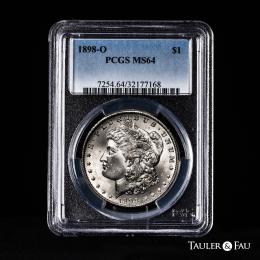 Estados Unidos. Morgan Dollars. 1 dollar. 1898. Nueva Orleans. O. (Km-110). Ag. Brillo original. Encapsulada por PCGS como MS 64. Est...120,00.
