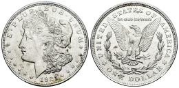 Estados Unidos. Morgan Dollars. 1 dollar. 1904. Nueva Orleans. O. (Km-110). Ag. 26,74 g. Restos de brillo original. Ligeramente limpiada. Ex Tauler & Fau 91 (14/09/2021), lote 99. EBC+. Est...85,00.