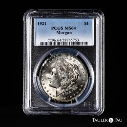Estados Unidos. Morgan Dollars. 1 dollar. 1921. Philadelphia. (Km-110). Ag. Brillo original. Encapsulada por PCGS como MS 64. Est...120,00.
