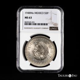 México. 5 pesos. 1948. México. (Km-465). Ag. Encapsulada por NGC como MS 63. Est...80,00.