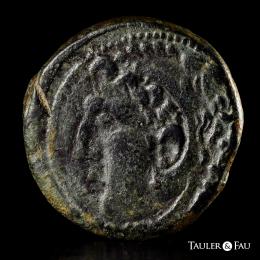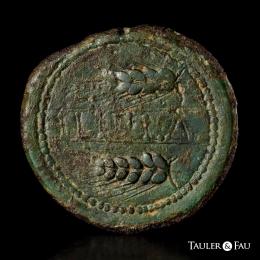 Ilici. Época de Tiberio. As. 14- 36 d.C. Elche (Alicante). (Abh-1525). (Acip-3209). Anv.: Cabeza de Tiberio a izquierda, alrededor TI. CAESAR. DIVI. AVG. F. AVG. P. M. Rev.: Personajes togados, debajo IVNCTIO, alrededor L. TER. LON. L. PAQ. AVIT. II. VIR. Q.C.I.I.A. . 12,00 g. MBC-/MBC. Est...90,00.